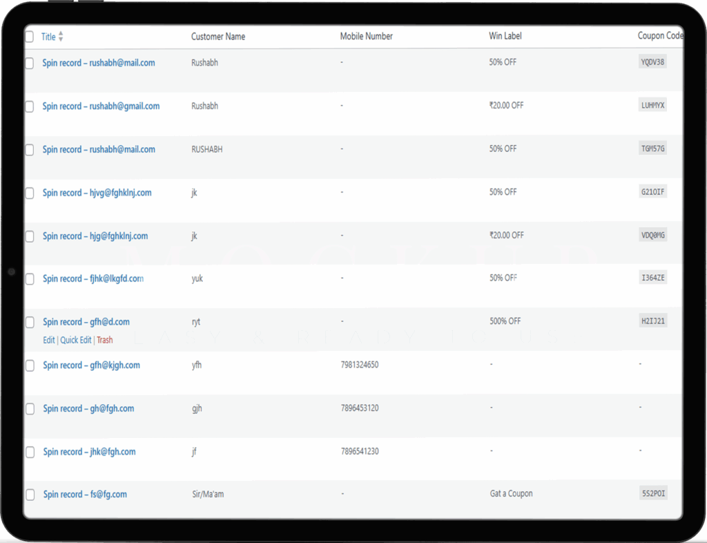 Automate coupon code, expiry date, and send winning emails directly to customers.
